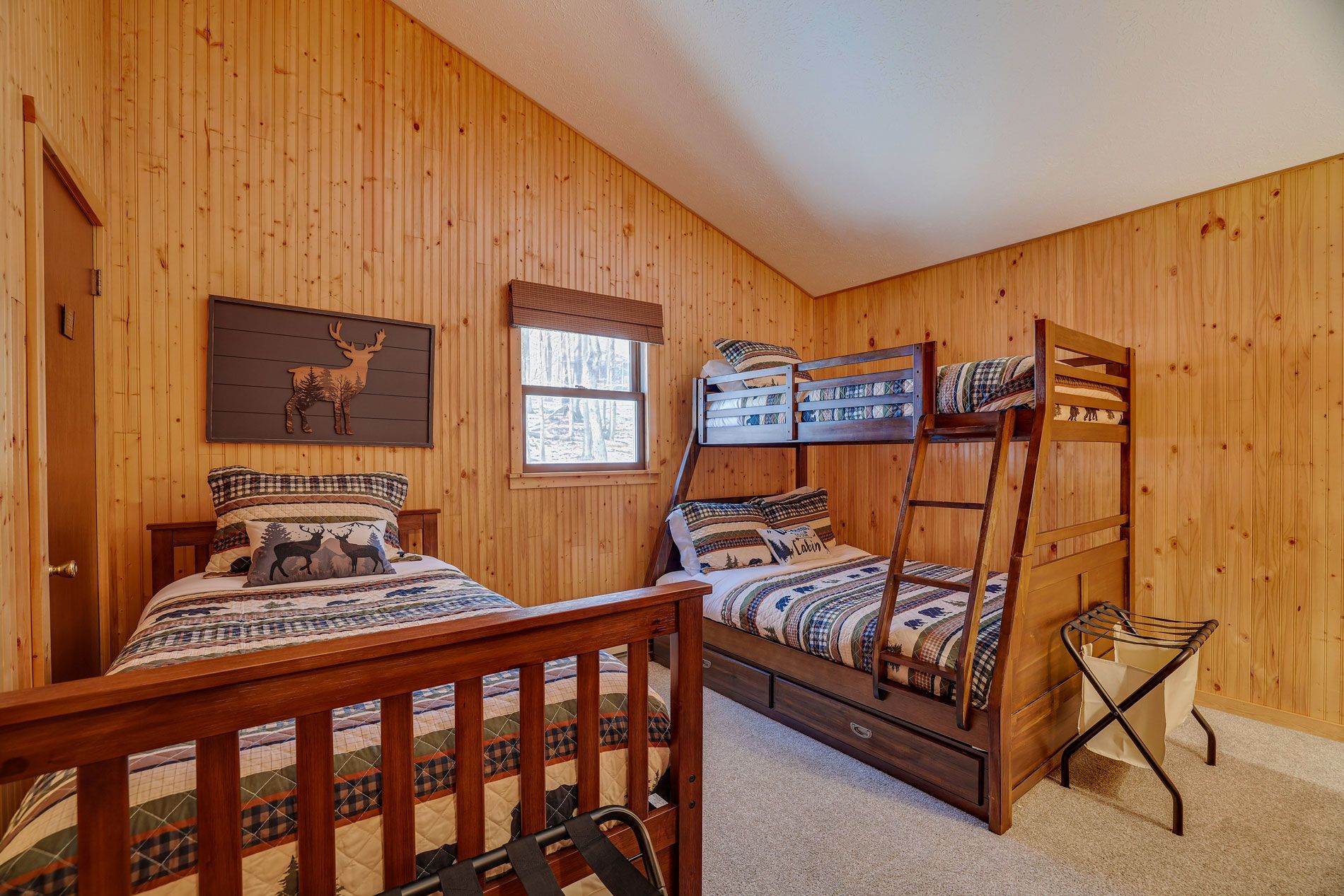 Our beautifully decorated lodge comfortably accommodates up to 9 guests across 3 distinct bedrooms. Sink into brand new, crisp bedding and enjoy the cozy ambiance of the Pocono mountains.