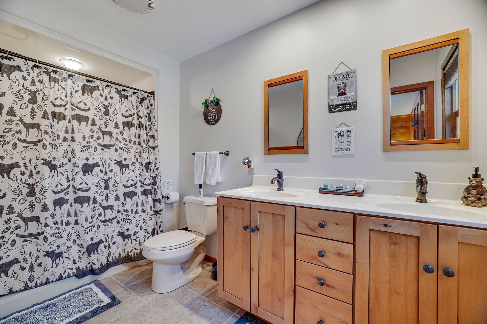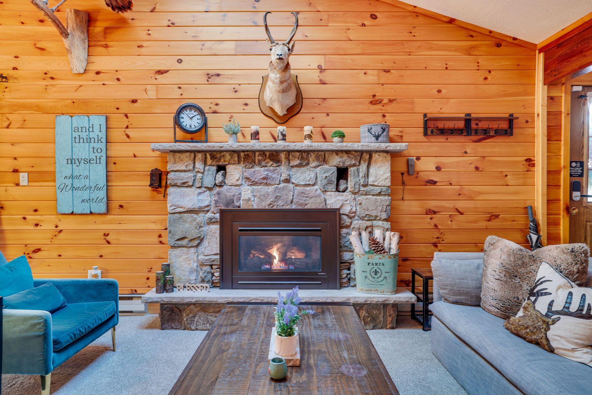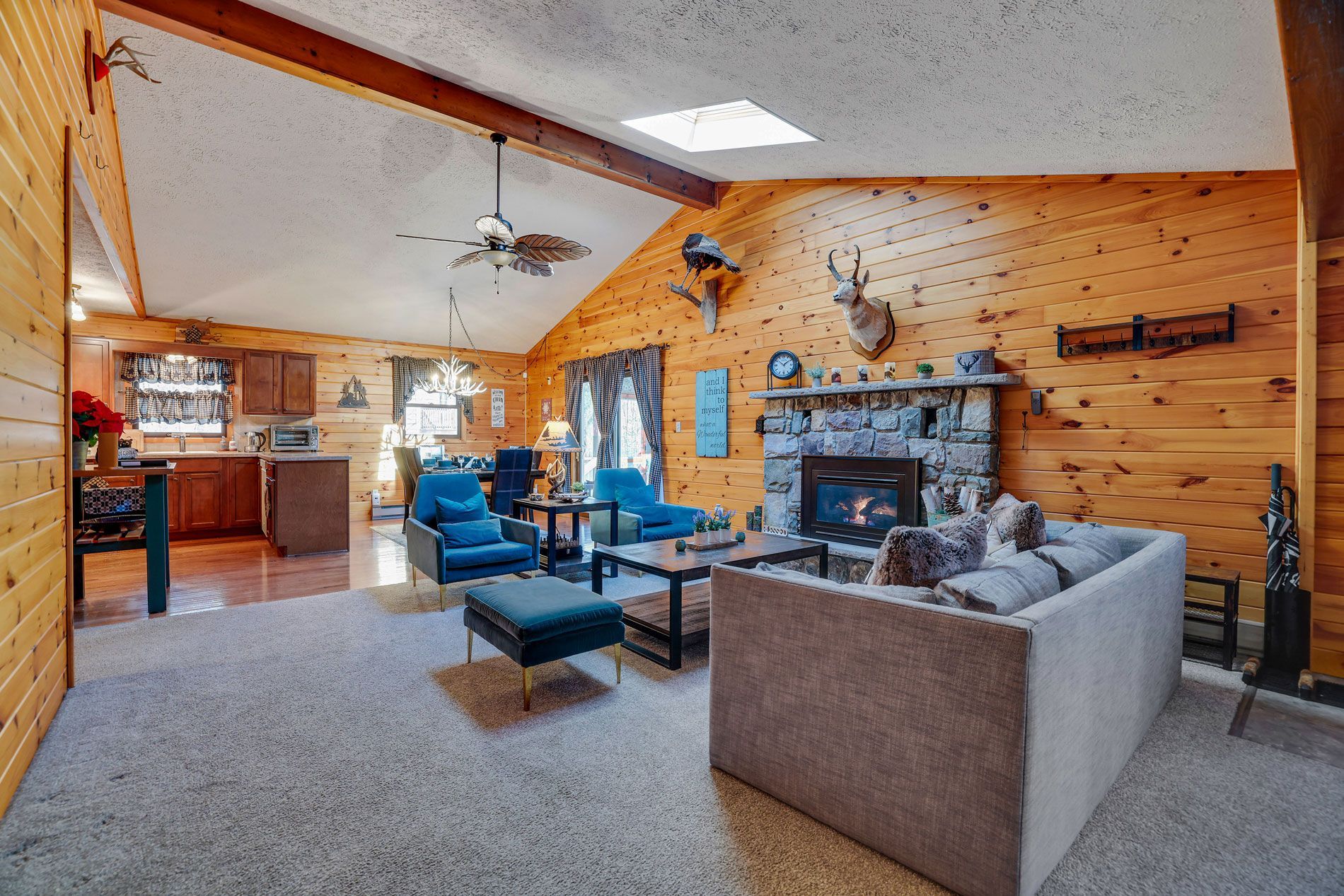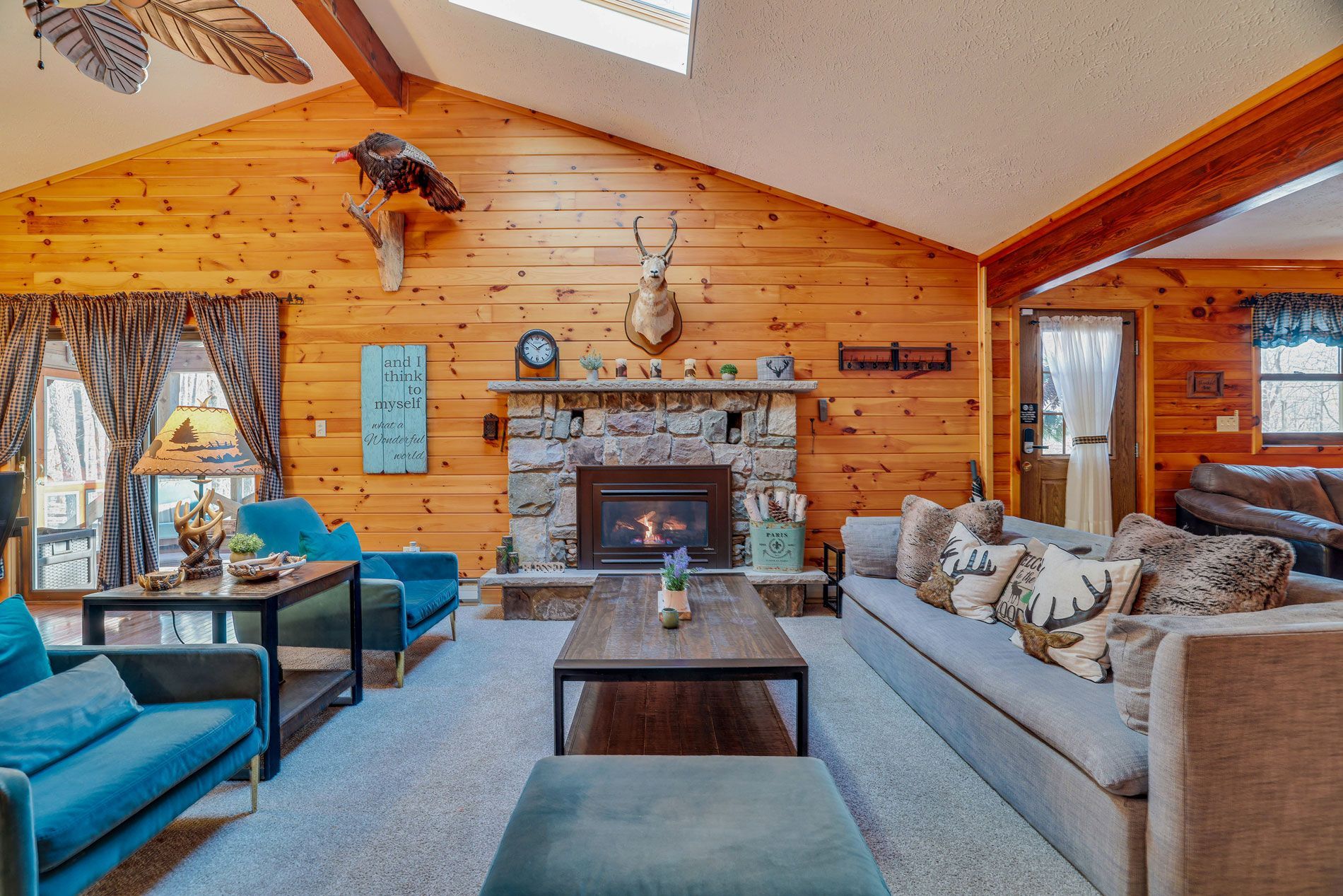 Discover the inviting warmth of Wooden Heart Cabin's interior, where rustic charm meets modern comfort. Sink into the plush furnishings of the living room, basking in the glow of the fireplace on cool evenings. Natural light fills the space, offering tranquil views of the surrounding woodland. Each bedroom provides a sanctuary of relaxation, adorned with fresh, crisp bedding. The fully equipped kitchen invites culinary adventures, while the dining area sets the scene for shared meals and laughter. With thoughtful details throughout, Wooden Heart Cabin promises a cozy escape in the heart of the Poconos.